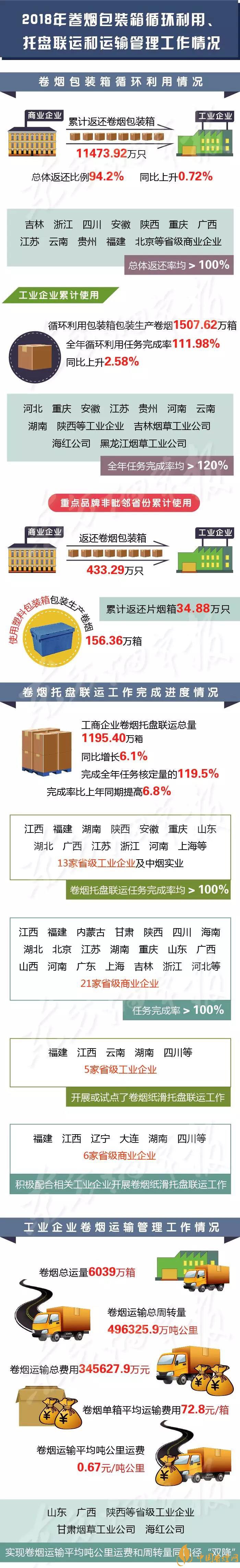 1月29日,國(guó)家煙草專賣局通報(bào)了2018年度卷煙包裝箱循環(huán)利用、卷煙托盤聯(lián)運(yùn)及卷煙運(yùn)輸管理工作情況(一圖速覽↓↓↓)。
