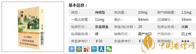 | 類型 :烤煙型 | 焦油量 :10mg | 煙氣煙堿量 :1.1mg | 一氧化碳量 :11mg |