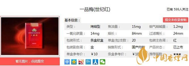 一品梅世紀(jì)紅設(shè)計(jì)兼顧了卷煙健康消費(fèi)需求,采用了多項(xiàng)創(chuàng)新技術(shù)。降低一氧化碳含量,大大降低了卷煙危害性,充分體現(xiàn)了卷煙健康消費(fèi)需求。經(jīng)香煙網(wǎng)小編市場(chǎng)調(diào)查一品梅世紀(jì)紅售價(jià)為10元/包。