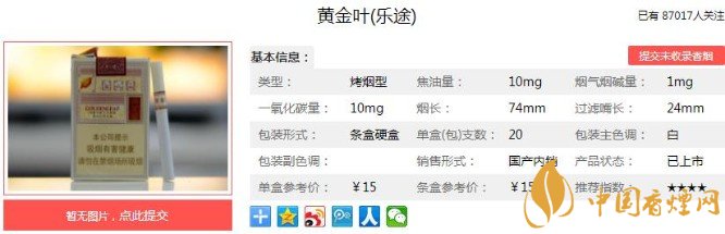 以上便是香煙網(wǎng)小編為大家介紹的關(guān)于黃金葉價格及口感分析,包裝是最閃亮的點!的相關(guān)信息,看完之后大家是不是對于黃金葉(樂途)的相關(guān)信息更加了解呢。大家還想查詢更多的相關(guān)內(nèi)容歡迎點擊:黃金葉小黃金好抽嗎 黃金葉小黃金價格及參數(shù)介紹