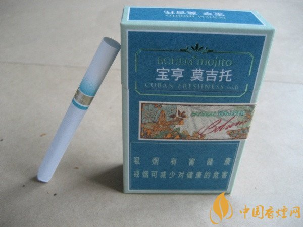 寶亨莫吉托爆珠香煙外觀漂亮,薄荷味的混合型香煙中的經典之一,煙支過濾嘴淡藍色系,煙身潔白,整體結構不錯。口感是典型的薄荷混合著淡淡的酒香味,味道清醇涼爽,勁道大過韓國的愛喜香煙,喜好口感清爽的煙迷們有口福了,作為一款涼系香煙,個人還是很喜歡的,值得推薦。
