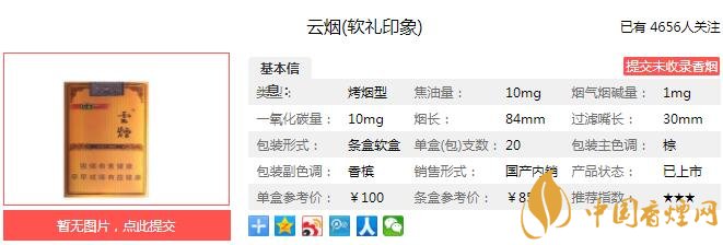 以上便是由香煙網(wǎng)小編為大家介紹的關(guān)于云煙軟禮印象怎么樣 云煙軟禮印象口感及參數(shù)介紹的相關(guān)信息,想要了解更多有關(guān)內(nèi)容請(qǐng)點(diǎn)擊:黃金葉天韻多少錢(qián)一包 黃金葉天韻口感及參數(shù)分析