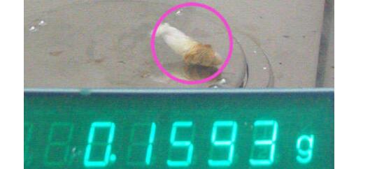 2,稱量出棉花原本的質(zhì)量,然后再稱量收集到總粒相物后的棉花質(zhì)量(見下圖2),用后者的質(zhì)量減去前者的質(zhì)量就是一根煙含有的總粒相物質(zhì)量;