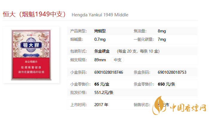 “恒大(煙魁1949中支)”煙支周長介于細支煙和常規(guī)煙之間,在吸味和滿足感上做到了均衡和統(tǒng)一。