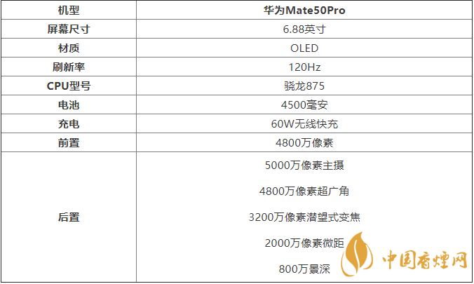 以上就是香煙網(wǎng)小編為大家介紹的華為Mate50Pro參數(shù)詳情的相關(guān)內(nèi)容了,希望對大家在選擇時有所幫助。了解更多實用手機(jī)相關(guān)咨詢,請關(guān)注香煙網(wǎng)。