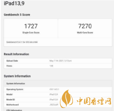 從微博博主“數(shù)碼閑聊”爆料的信息來看iPadPro2021單核得分:1727,多核得分:7270。
