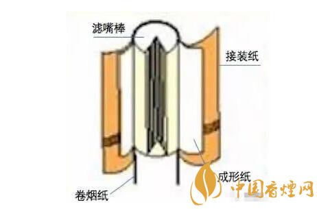 空腔濾嘴:空腔濾嘴是屬于二元復合濾嘴的一種,二元復合濾嘴通常是一段濾材為醋酸纖維,另一段為皺紋紙或生產過程中摻入添加劑(如活性炭)的醋酸纖維??涨粸V嘴是屬于后端為皺紋紙的那種,因為后端為中空,為了不使其塌陷,而醋酸纖維太軟,所以利用皺紋紙做成中空型。因其有一段規(guī)則的空腔, 形成一個低壓通道,抽吸時吸阻小, 能夠顯著提高對煙氣中焦油的過濾效率,有效地減少焦油和一氧化碳的釋放量。
