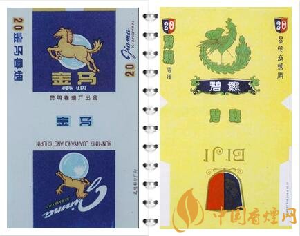 1979年,昆明卷煙廠出品。金馬、碧雞圖案為昆明市市徽,60年一遇金碧交輝昆明天象奇觀。金馬碧雞坊,現(xiàn)在依然是昆明市的商業(yè)中心、昆明地標(biāo)性建筑。