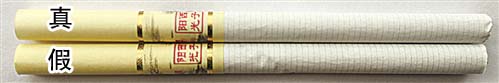 1.正面商標紙印刷工藝差異對比:真品商標紙采用膠印印刷,中間“利群”文字及拼音采用壓凸燙金工藝,用手摸凹凸感明顯,“蘇堤春曉”主體圖案顏色較深;假煙采用高清掃描仿制印刷,中間“利群”文字及拼音用手摸無凹凸感,“蘇堤春曉”主體圖案顏色較淡,商標紙整體顏色偏黃。