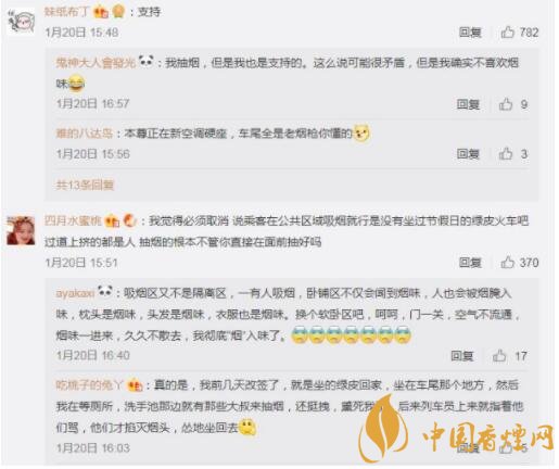 網(wǎng)友對列車全面禁煙的評論截圖