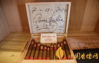 著名煙斗師安麗·朱莉從業(yè)50周年時(shí)出品的一款中國雪茄限量版集成裝,里面包含了中國四家雪茄煙廠的限量版雪茄,并有安麗·朱莉的親筆簽名。