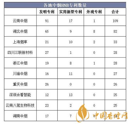 云南中煙作為國內(nèi)較早布局新型煙草制品的企業(yè),截至2019年7月?lián)碛蠬NB相關(guān)專利總量超109件,位列各省級中煙公司之首。
