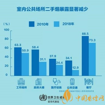 最近發(fā)布的2018年中國成人煙草調(diào)查顯示,過去十年中國控?zé)煿ぷ魅〉昧酥匾M(jìn)展。與八年前相比,現(xiàn)在中國人遭受二手煙危害的幾率要小很多,室內(nèi)公共場所二手煙暴露的顯著減少就證明了這一點(diǎn),比如工作場所(63.3%降至50.9%),政府大樓(58.4%降至31.1%),醫(yī)療設(shè)施(37.9%降至24.4%),公共交通(34.1%降至12.9%),甚至餐廳(88.5%降至73.3%)。