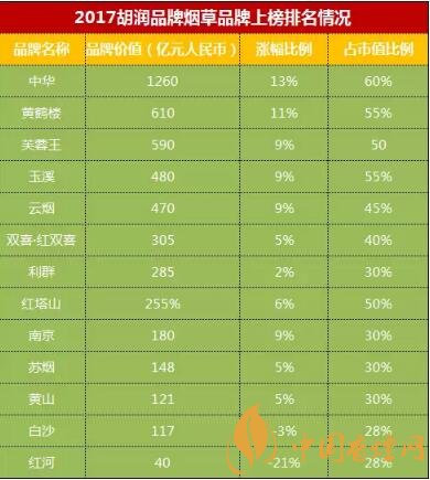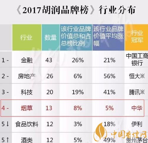 一年一度不能錯(cuò)過(guò)的2017胡潤(rùn)品牌排行榜已經(jīng)公布了,作為煙民一員,你知道今年的煙草企業(yè)在2017胡潤(rùn)品牌排行榜的情況嗎?下面香煙網(wǎng)小編為大家整理介紹本次發(fā)布的煙草企業(yè)榜單的品牌數(shù)據(jù)情況吧!
