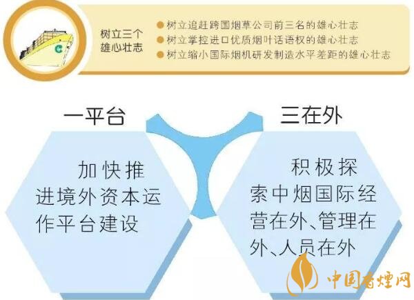 2017年全國煙草工作會議上,凌成興局長明確提出“深化‘走出去’發(fā)展配套體系改革,加快推進(jìn)境外資本運作平臺建設(shè),積極探索中煙國際實現(xiàn)經(jīng)營在外、管理在外、人員在外的轉(zhuǎn)型方案”。目前,“一平臺三在外”,已經(jīng)上升為行業(yè)國際市場拓展的戰(zhàn)略性舉措,是行業(yè)當(dāng)前和今后一個時期內(nèi)推進(jìn)拓展體制改革、機(jī)制創(chuàng)新、業(yè)務(wù)發(fā)展的重要著力點。