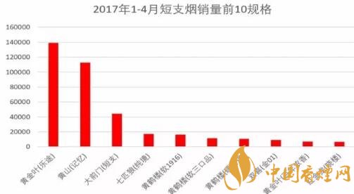 2017年1-4月短支煙銷量前10規(guī)格(單位:萬支)