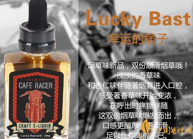 美國金獎煙油有哪些?美國金獎電子煙油Cafe就是其中一款,CAFE RACER摩托車系列煙油為加州恩西尼塔斯的始創(chuàng)者手工制作,均使用方形瓶裝,全系列有3款口味并都貼有印著機車圖案的標(biāo)簽,為:Lucky13(幸運13)、Pech guzzi(桃子機車,guzzi為意大利語的摩托車)和Yogurt bomb(優(yōu)格炸彈),3款煙油的PG:VG均為30:70,適用于儲油和滴油霧化器,其中的Lucky13為美國峰會金獎煙油上的煙草口味金獎得主。
