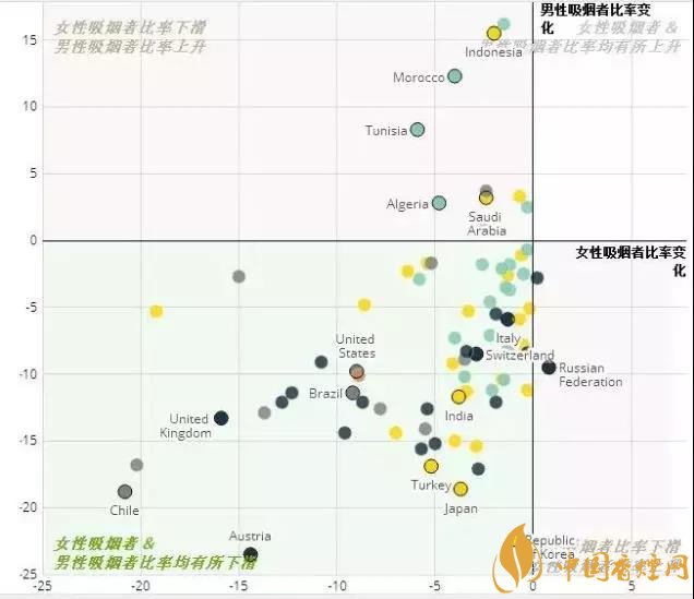 自2000年以來,幾乎全球每個(gè)國家的女性吸煙者比率都有所下降,女性吸煙的危害有哪些,可能大家意識(shí)到女性吸煙的危害比男性還大。,而男性則迥然不同。