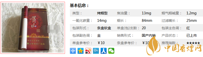 黃山軟紅香煙,焦油量較高,煙氣較沖鼻,濃厚中飽滿協(xié)調(diào)、更具層次感。適合老煙民品吸,剛?cè)腴T的煙友,可能會(huì)不習(xí)慣它的味道。下面我們一起來看看它的參數(shù)信息:焦油量13mg,煙堿量1.2mg,一氧化碳量14mg。