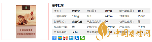 | 類型 :烤煙型 | 焦油量 :10mg | 煙氣煙堿量 :1mg | 一氧化碳量 :11mg |