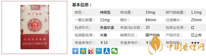 | 類型 :烤煙型 | 焦油量 :10mg | 煙氣煙堿量 :1.1mg | 一氧化碳量 :11mg |