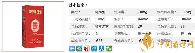 產(chǎn)品在延續(xù)“雙喜”“高香”風格的基礎上,進一步提升了香氣的品質(zhì)和抽吸卷煙后口腔、喉部的舒適度。在豐富、提調(diào)了產(chǎn)品自然煙香的同時,增強了卷煙的醇和度和舒適度。香氣豐富細膩、醇厚悠長,吸味醇和典雅,余味舒適、生津回甜、清爽而綿長。