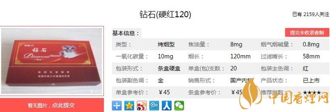 一、鉆石硬紅120香煙價(jià)格