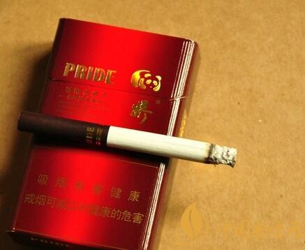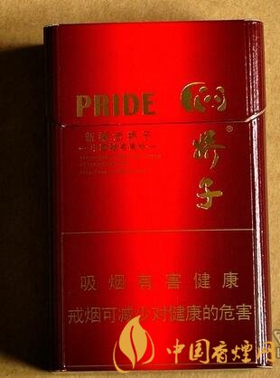 從上到下看,最上面是字母“PRIDE”,右邊是嬌子的LOGO熊貓形象。下面是漢字:“新概念嬌子”,“—中國馳名商標(biāo)—”等香煙基本信息,這幾行信息的右邊是“嬌子”字樣。底下警語寫著:吸煙有害健康 戒煙可減少對健康的危害,包裝背面與正面基本相似。包裝整體十分簡單新穎。