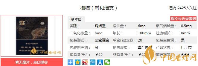 一、御貓融和細(xì)支香煙價格