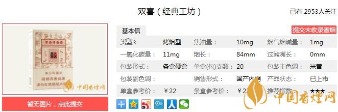 以上便是由香煙網(wǎng)小編為大家介紹的關(guān)于雙喜經(jīng)典工坊多少錢(qián)一包 雙喜經(jīng)典工坊口感及參數(shù)介紹的相關(guān)信息,想要了解更多有關(guān)內(nèi)容請(qǐng)點(diǎn)擊:七匹狼通仙3mg多少錢(qián)一包 低焦留香滿足感強(qiáng)