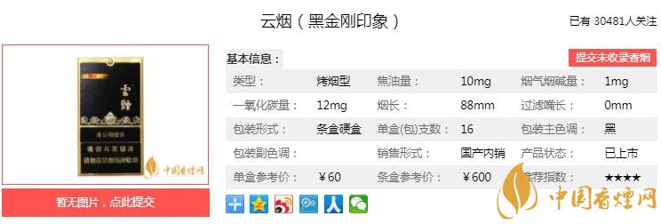 三、云煙(黑金剛印象)香煙參數(shù)