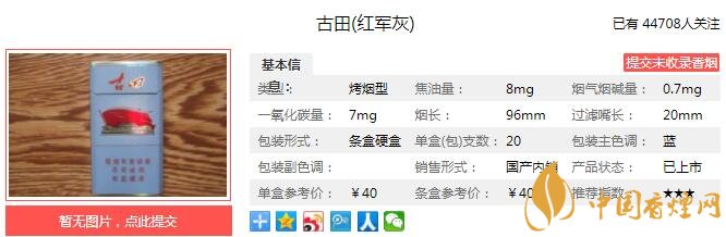 以上便是由香煙網(wǎng)小編為大家介紹的關(guān)于古田紅軍灰多少錢一包 古田紅軍灰口感如何的相關(guān)信息,想要了解更多有關(guān)內(nèi)容請點(diǎn)擊:泰山秀系列香煙有幾種 六款泰山秀系列香煙價(jià)格介紹