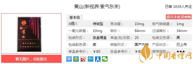 以上便是由香煙網(wǎng)小編為大家介紹的關(guān)于黃山新視界紫氣東來(lái)多少錢(qián)一包 黃山新視界口感分析的相關(guān)信息,想要了解更多有關(guān)內(nèi)容請(qǐng)點(diǎn)擊:古田紅軍灰多少錢(qián)一包 古田紅軍灰口感如何