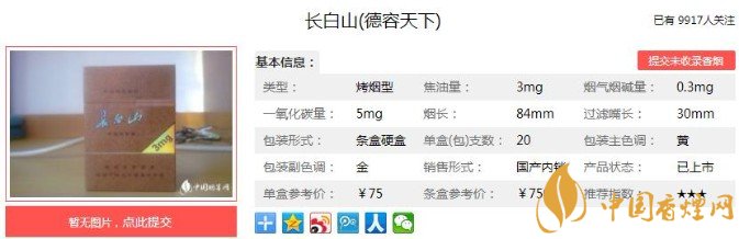 以上便是香煙網(wǎng)小編為大家介紹的關(guān)于長白山德容天下價格75元一包,復古的包裝才是亮點!的相關(guān)信息,看完之后大家是不是對于長白山(德容天下)的相關(guān)信息更加了解呢。大家還想查詢更多的相關(guān)內(nèi)容歡迎點擊:長白山天韻多少錢一包 長白山天韻口感及參數(shù)介紹