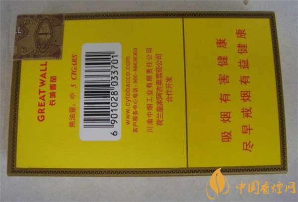 這款長城雪茄煙外包裝以黃色為主色系,金色為輔助色系,整體包裝設(shè)計簡約而大氣。雪茄本香香醇而流暢,回味純凈,細(xì)品之下能充分感受其特有的異國風(fēng)味。雪茄煙燃燒得很快,5支裝對于煙癮稍大些的茄友來說略顯少,不過對初吸者來說這款還是值得體驗的,長城騎士國際原味總的來說還是不錯的一款雪茄,雖然價格略偏高,但可以偶爾補(bǔ)充一下能量也不錯。想詳細(xì)了解請點擊:長城雪茄煙(騎士國際原味)怎么樣