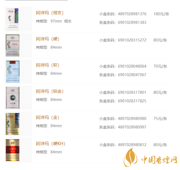 2020年阿詩(shī)瑪香煙價(jià)格表圖