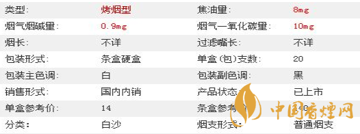 | 類(lèi)型 :烤煙型 | 焦油量 :8mg | 煙氣煙堿量 :0.9mg | 一氧化碳量 :10mg |