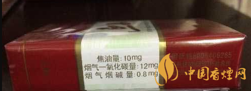 類型 :烤煙型 焦油量 :10mg 煙氣煙堿量 :0.8mg 一氧化碳量 :12mg
