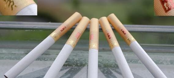 傳統(tǒng)的黃色反光過(guò)濾嘴,也被小圓點(diǎn)分成像郵票一樣的小格,有錦繡小條章的那格同樣也有像郵戳的波浪紋。卷煙紙是安徽中煙一貫的橫紋卷煙紙盤(pán)紙,煙絲橘黃,香氣帶一點(diǎn)微甜。