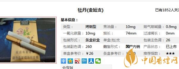 短支金牡丹多少錢一包 短支金牡丹香煙價格表