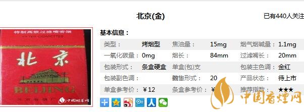 北京卷煙廠始建于1970年,位于朝陽區(qū)管莊西里42號,是一個占地面積十一萬二千平方米、建筑面積九萬余平方米,工藝布局合理、管理科學、技術設備先進、自動化水平較高的中國中型卷煙工業(yè)企業(yè),在對北京喜慶香煙價格表分析之前,先來看看北京喜慶煙多少錢一包,北京喜慶香煙也就是現(xiàn)在北京(金),它的售價為12元/包。