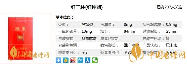 紅鐘鼎香煙參數(shù)信息