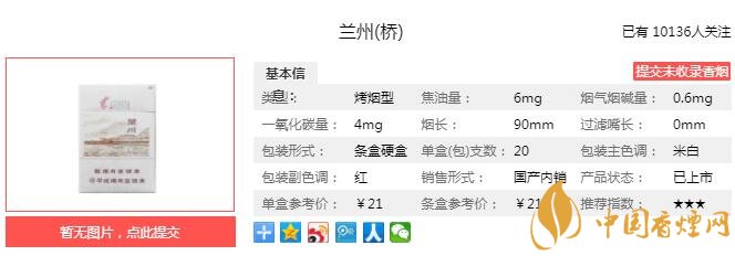 蘭州(橋)結(jié)合西北地區(qū)干燥氣候特色,在繼承“綿香”傳統(tǒng)風(fēng)格的基礎(chǔ)上,選用真空回潮技術(shù)與“綿性”加工技術(shù),在去除煙葉雜氣的同時,增加煙葉耐加工性能,更加強(qiáng)化“甜潤”感,具備“干燥我適合,綿香更甜潤”之獨特味道。經(jīng)香煙網(wǎng)小編市場調(diào)查蘭州橋售價為21元/包。