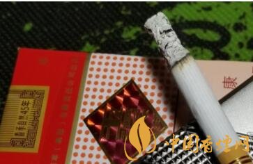 煙封的中間,頂部,變形的中國結(jié)中有45字樣。