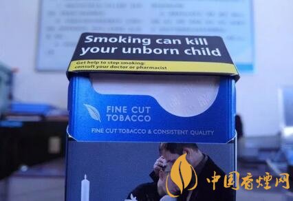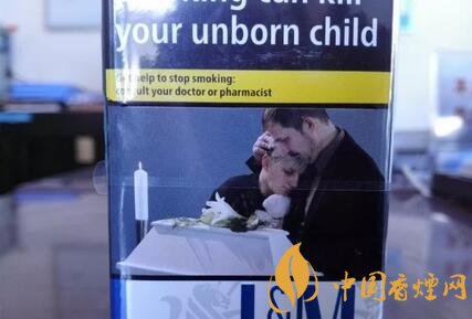 與歐盟警示圖片版本的萬寶路一樣,因?yàn)榫緢D片內(nèi)容印制于煙盒的正反兩面,英文警示語句,只能位移于煙盒的左右兩側(cè)。