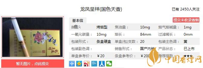 三、龍鳳呈祥國色天香香煙參數(shù)