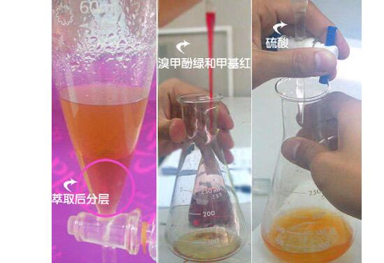 4,以三氯甲烷為萃取劑,為指示劑,用標(biāo)準(zhǔn)硫酸溶液直接滴定尼古丁的方法(操作及顏色變化見圖4)。