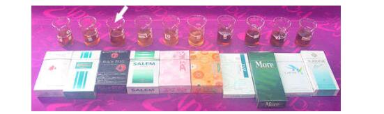 在主流煙氣的氣相物中,最主要的有氮、氧、二氧化碳、一氧化碳和氫。這5種氣體約占總氣相物的90%,占總煙氣釋放量的85%左右。除此之外,還有一些其它化學(xué)成分。其中最主要的有害成分就是煙堿(尼古丁),焦油,一氧化碳。接下來就讓我們對這幾種有害物質(zhì)進(jìn)行評測。