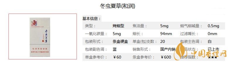 大家都知道冬蟲(chóng)夏草是非常名貴的藥材,只要沾上冬蟲(chóng)夏草,什么物品的價(jià)格都會(huì)猛升。那么你知道冬蟲(chóng)夏草煙嗎?可想而知,冬蟲(chóng)夏草煙一定是高檔香煙品牌了,今天小編就為大家介紹一款冬蟲(chóng)夏草和潤(rùn)的價(jià)格參數(shù),口感分析以及煙民們對(duì)他的點(diǎn)評(píng)。一起來(lái)看看吧!