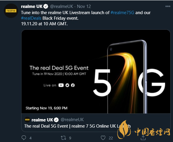 昨天,Realme75G通過了NBTC認(rèn)證。隨后,realme在Twitter上正式確認(rèn)了realme75G的發(fā)布日期:2020年11月19日。下面跟著小編來一起了解一下吧。